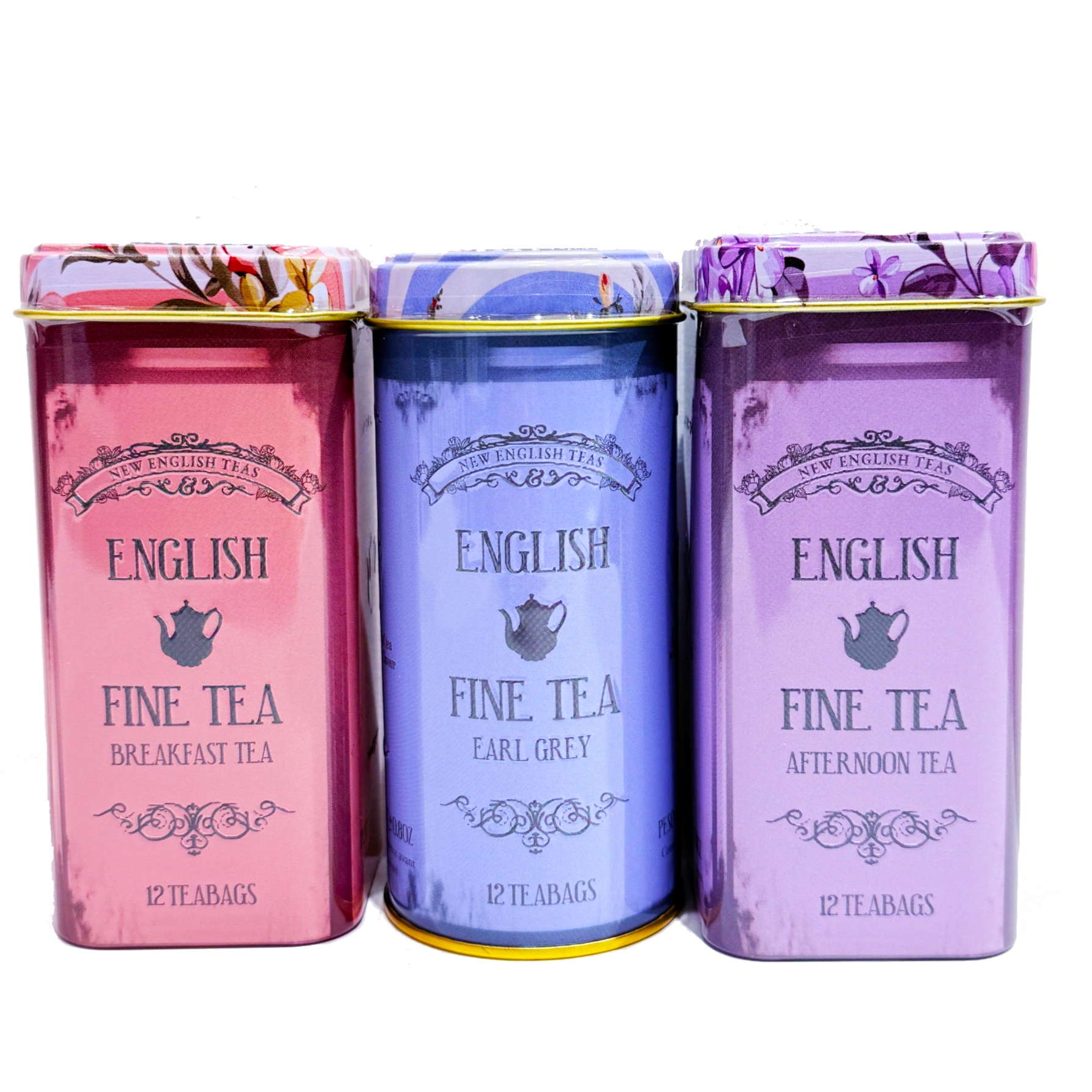 The Vintage Floral 12 Teabag Tin Set includes three elegantly designed tins, each containing 12 teabags. Enjoy a selection of classic teas: English Breakfast, Earl Grey, and English Afternoon. Perfect for gifting or adding a touch of vintage charm to your tea collection.
