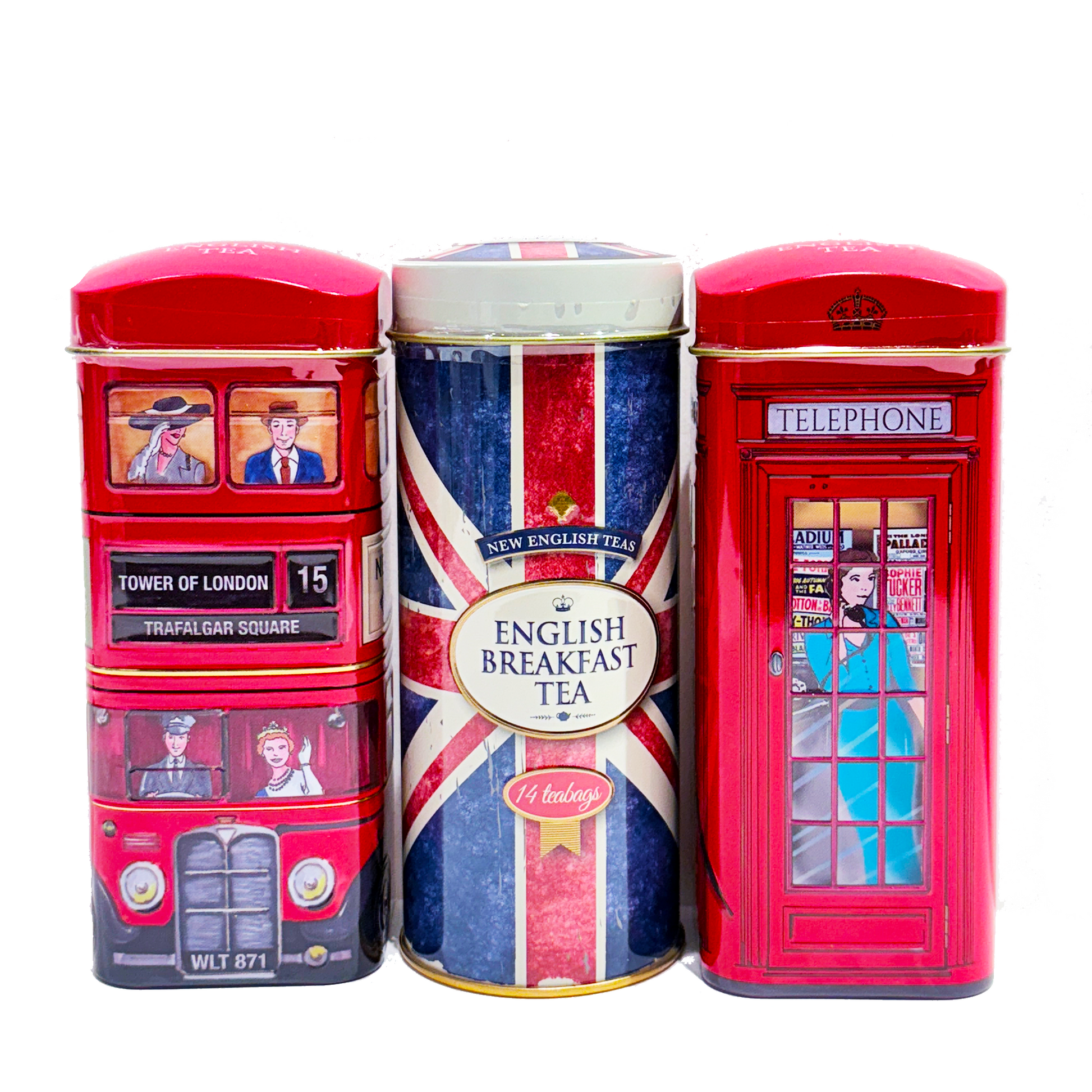 The British Tea Selection features three beautifully designed tins, each containing 14 tea bags—2 tins of classic English Tea and 1 tin of English Breakfast. A perfect gift for tea lovers or to enjoy a true taste of Britain.